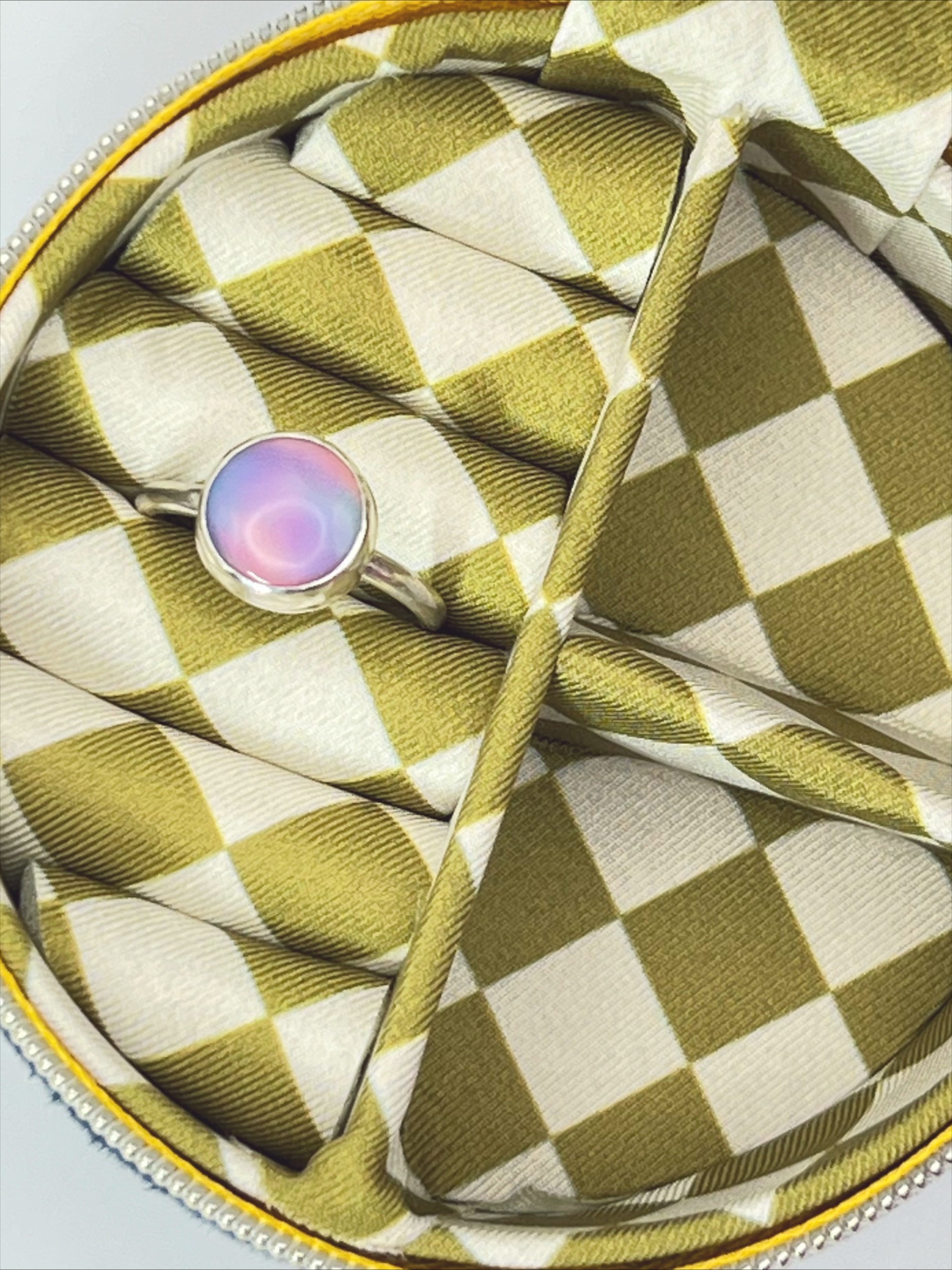 Handmade Aurora Opal and Sterling silver ring. Size N.