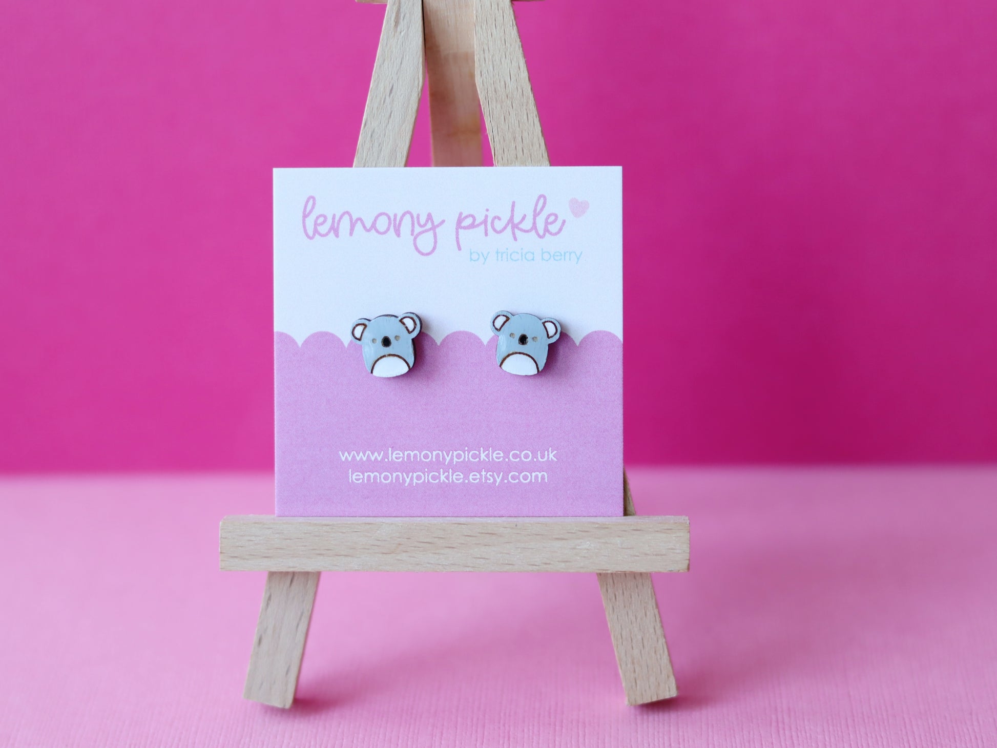 Elevate your style with our cute Koala handpainted wooden studs. The adorable koala design adds a touch of kawaii cuteness to any outfit.