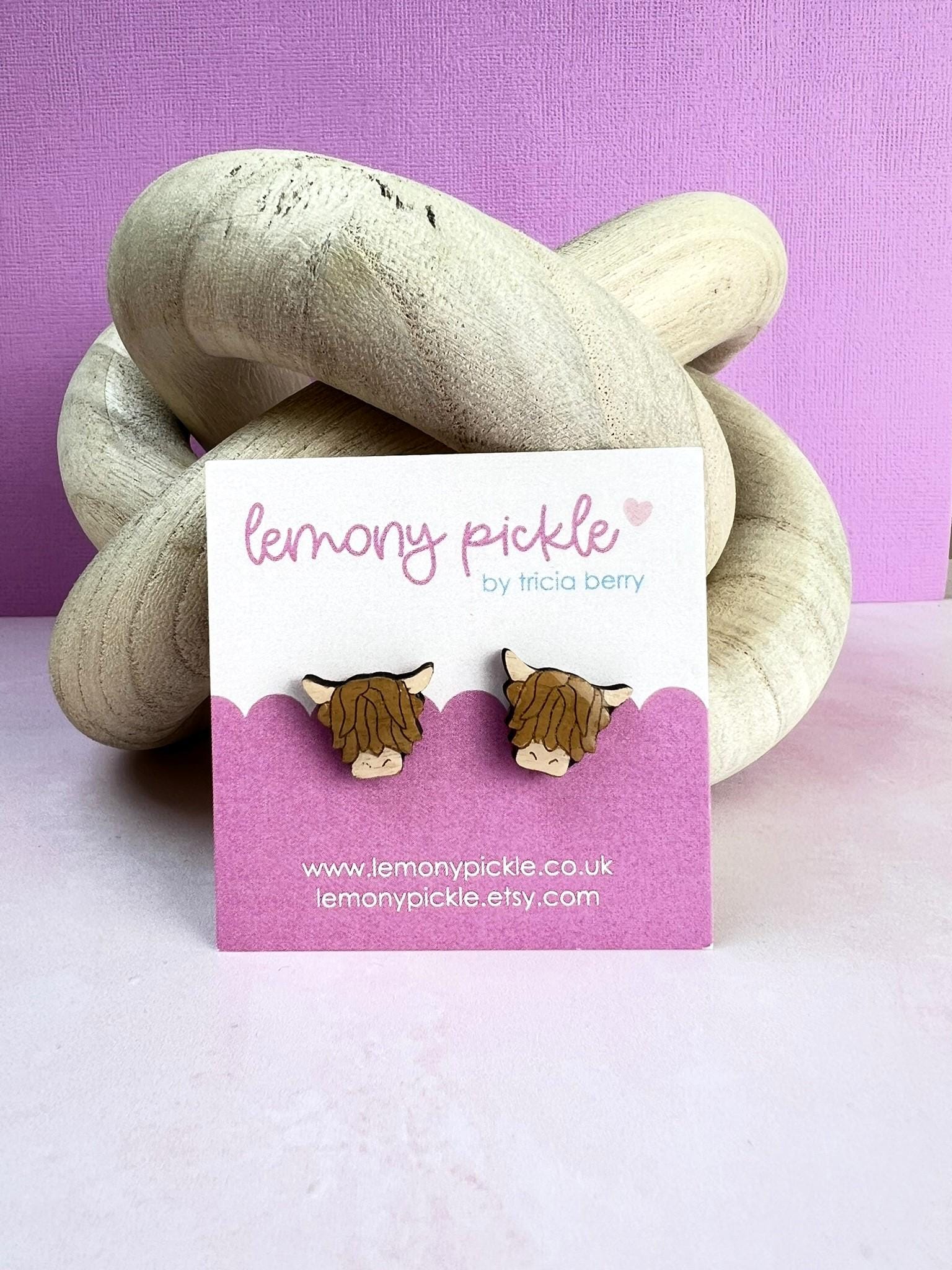 Highland Cow Earrings | Hand Painted Wooden Studs