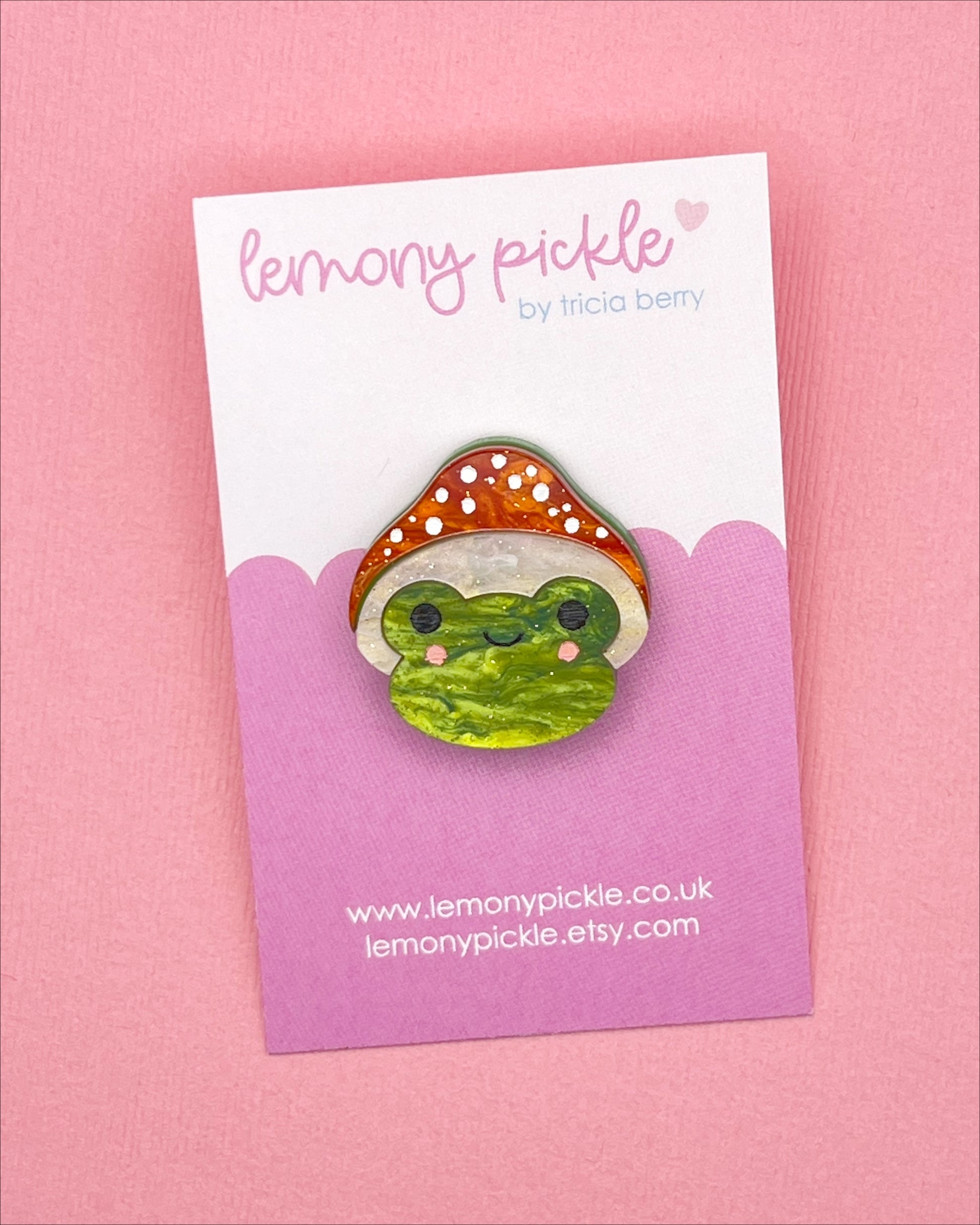 Our super cute mushroom frogs - now available as a pin badge!