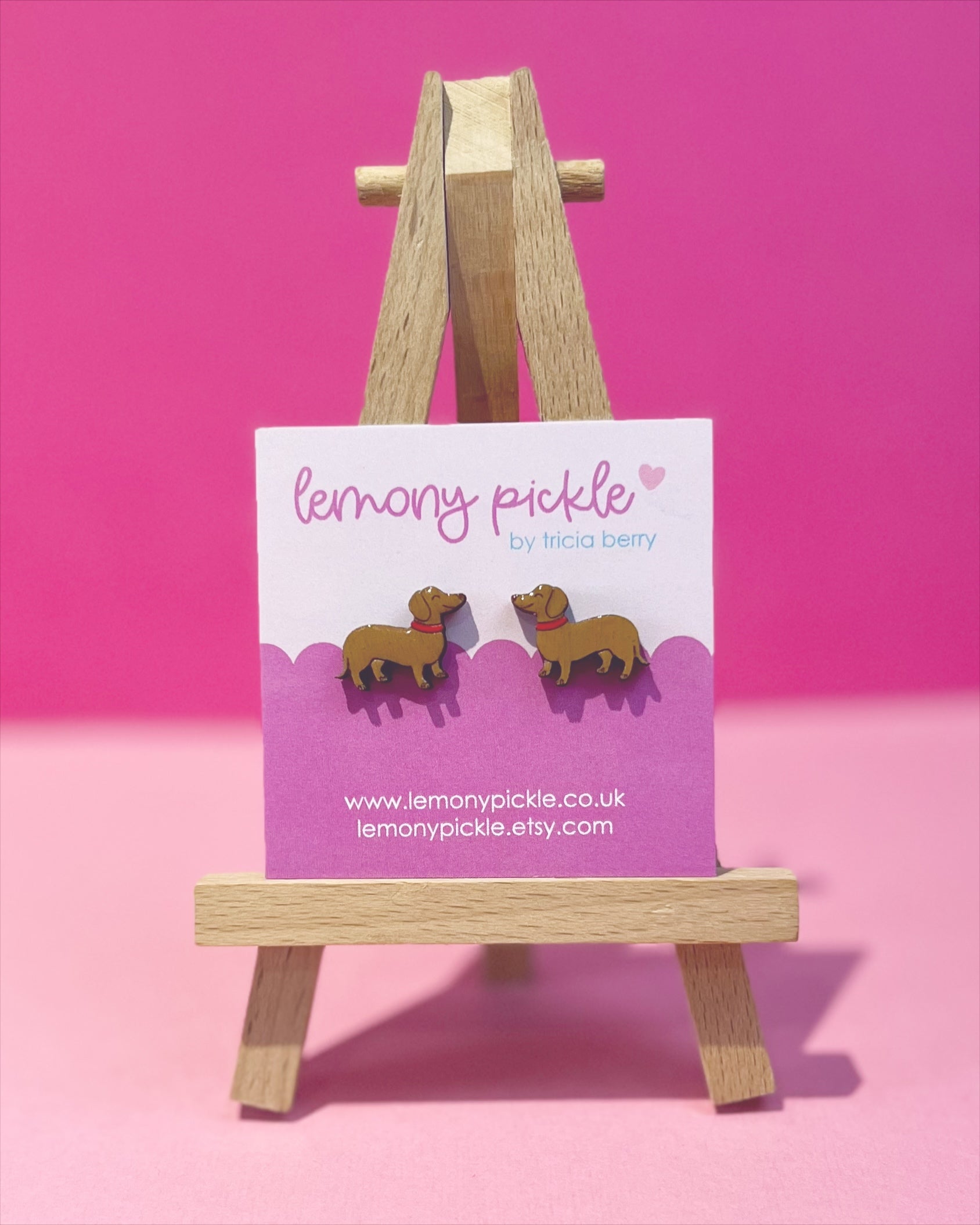Bring a touch of whimsy to your look with these hand-painted wooden sausage dog stud earrings. Lightweight, durable, and full of charm, they’re perfect for everyday wear or as a thoughtful gift for any daschund lover!